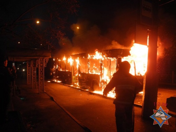 По прибытии к месту вызова происходило горение в салоне автобуса, следовавшего по маршруту №22А «ЗЛиН-мкрн.104».. принадлежит ОАО «Автобусный парк №6 г.Гомеля». Возгорание произошло при движении автобуса по маршруту, при подъезде к остановке. Водитель остановил автобус, выпустил пассажиров (47 чел.) и приступил к тушению автобуса огнетушителем, сообщает МЧС.