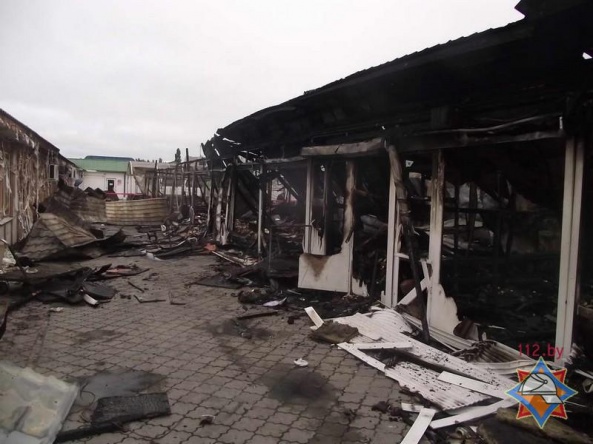 У Мазыры на рынку "Славянскі" ноччу згарэлі 14 гандлёвых павільёнаў - ФОТА
