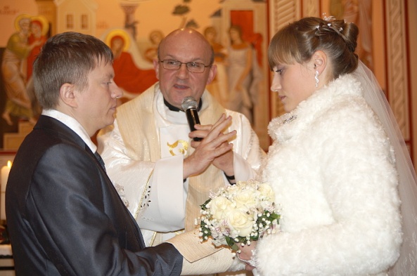 Уже третье в 2013 году венчание состоялось в гомельской римско-католической церкви 9 февраля. Перед копией чудотворной иконы Матери Божьей Будславской обвенчались Сергей и Наталья Курганские.