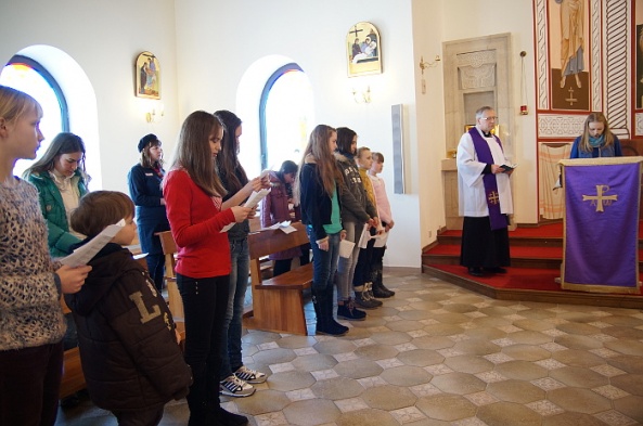 Днем Крестный путь провели приходские скауты - парни и девушки. А вечером состоялась Литургия Муки Господней.