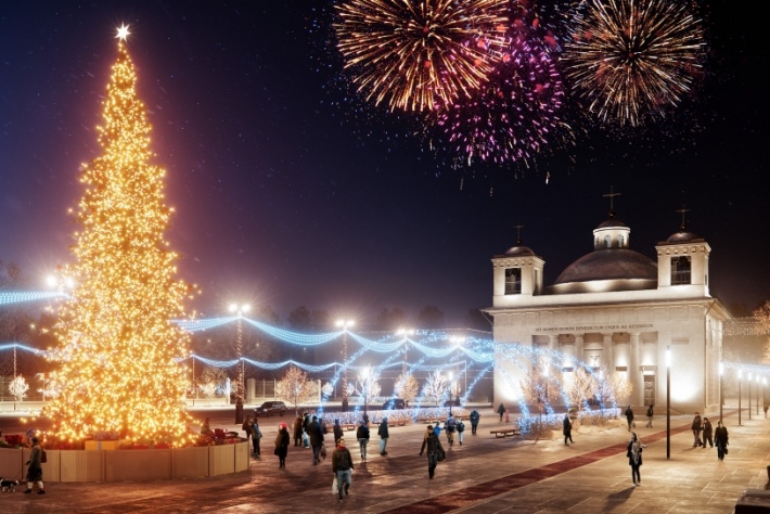 Сейчас архитекторы-энтузиасты нарисовали праздничный кадр и показали, что восстановление взорванного католического храма позволило бы увеличить пешеходное пространство перед драмтеатром и перенести туда елку.