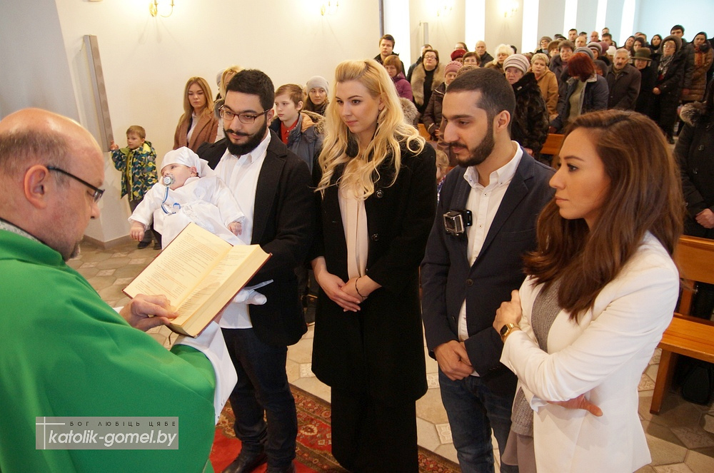 Необычная семья принесла в гомельскую католическую церковь для крещения маленького Томаса. Давним прихожанином костела является Антонио, который живет в Гомеле, но когда-то приехал из далекого Ливана. В Беларуси обосновался и его сын Джордж, который нашел здесь жену Кристину. Своего первенца супруги принесли в церковь, чтобы просить для него крещения, даров Святого Духа и вечной жизни.