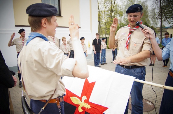 Отныне группа гомельских скаутов имеет свой флаг и руководителя - прихожанина гомельского костела Станислава Черепко, которого назначил дружиновым начальник скаутов в Беларуси Павел Гракович.