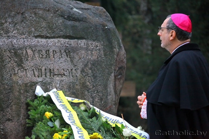 Представитель Понтифика возложил венки, зажег свечи и помолился об упокоении душ жертв, прося Бога о том, чтобы никогда больше насилие не истребляло человеческую жизнь, и о мире для Беларуси, региона и всего мира, сообщает Catholic.by.