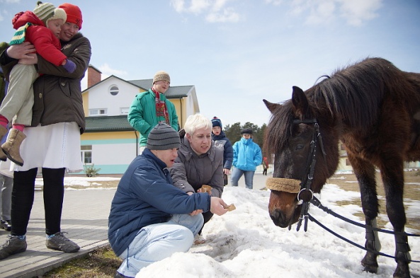 Прыезд коней у Дзіцячую вёску - гэта ўжо цэлае падзея для хлопчыкаў і дзяўчынак, гэтыя госці прыносяць шчырую радасць і буру уражанняў не толькі для тых дзяцей, што ездзяць на конях, але і для тых, якія могуць проста пастаяць побач, пагладзіць каня. Заняткі па іпатэрапіі праводзіць па дамове прыватны конны клуб.