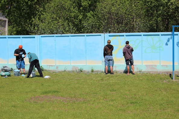 Цэлы дзень на спякоце юнакі і дзяўчаты працавалі над роспісам плота, а дзеці з цікавасцю назіралі за ўсім, што адбываецца, падыходзілі да каманды графіцістаў, каб павітацца і пазнаёміцца з імі. У выніку аднатонны плот за дзень цудоўна перамяніўся: на ім з'явіліся добрыя казачныя малюнкі, якія ўжо дапамагаюць дзецям-інвалідам адчуваць сябе лепш.