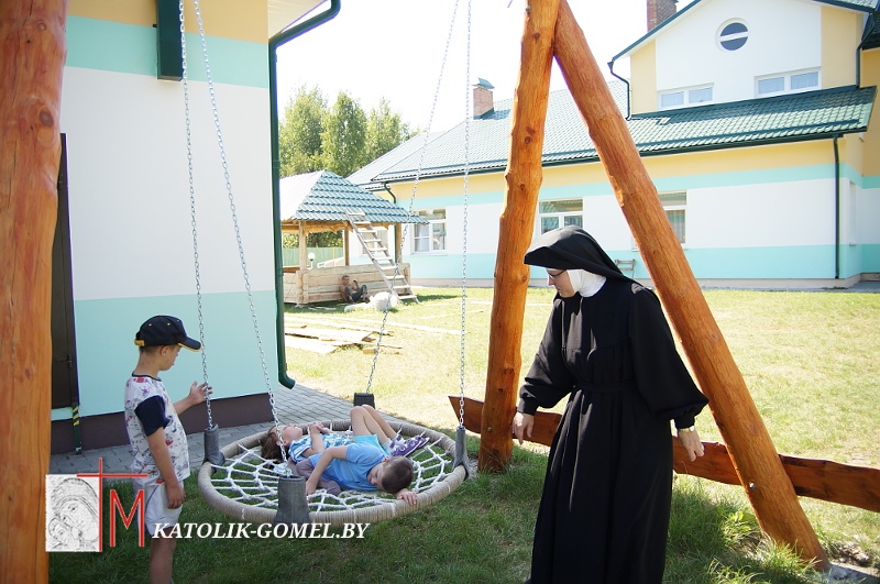 - Дзеці адчуваюць, калі выхавальнікі да іх добра ставяцца і любяць, самі ідуць насустрач, - тлумачыць сястра Каміла. - Для нас гэтыя дзеці сталі ўжо сапраўды роднымі. А пакуль спецыяльна для ляжачых дзяцей ля кожнага катэджа усталёўваюць унікальныя арэлі. Яны зроблены так, каб ляжачаму дзіцяці было зручна і бяспечна катацца.