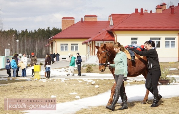 У траўні завяршаецца праект па занятках іпатэрапіяй ў «Гомельскім доме-інтэрнаце для дзяцей-інвалідаў і маладых інвалідаў з асаблівасцямі псіха-фізічнага развіцця» (Дзіцячай вёсцы). Праект рэалізоўваўся на працягу года дабрачыннай каталіцкай Місіяй «Карытас-Міласэрнасць» пры падтрымцы замежных спонсараў, заняткі праводзіліся прыватным конным клубам.