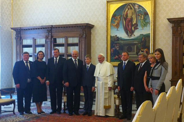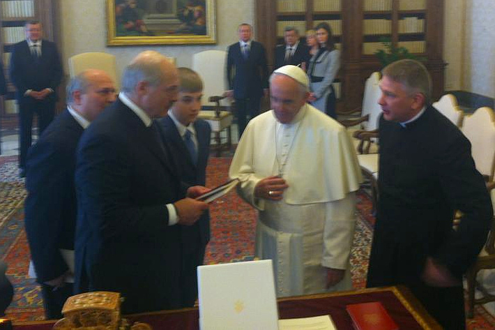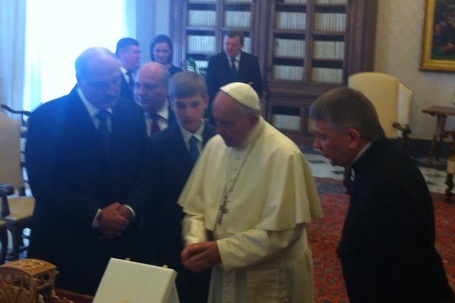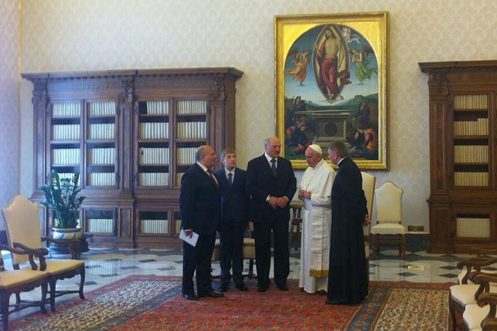 21 траўня на аўдыенцыі ў Ватыкане Папа Рымскі Францішак прыняў прэзідэнта Беларусі Аляксандра Лукашэнку. Пантыфік сустрэў прэзідэнта і яго малодшага сына Мікалая ля бібліятэкі ў залі Святых Пятра і Паўла і і прывітаў па-беларуску: "Хрыстос уваскрос!", спасылаючыся на велікодны перыяд, які зараз працягваецца ў праваслаўных. Пасля абмену прывітаннямі правёў яго ў бібліятэку. Там прайшла сустрэча, якая доўжылася каля 40 хвілін, з іх 25 хвілін - за зачыненымі дзвярыма. Прэзідэнт зноў запрасіў Папу наведаць Беларусь: