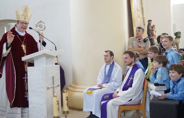 Перад тым, як дабраславіць парафіянаў і гасцей, Арцыбіскуп падкрэсліў, што гэта апошняе дабраславенне ад імя Папы Бэнэдыкта XVI, і ён вельмі рады, што перадае яго менавіта скаўтам.