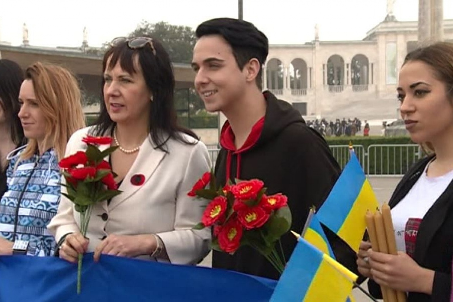 У Фаціме, разам з паслом Украіны ў Партугаліі, артыст памаліўся за мір.