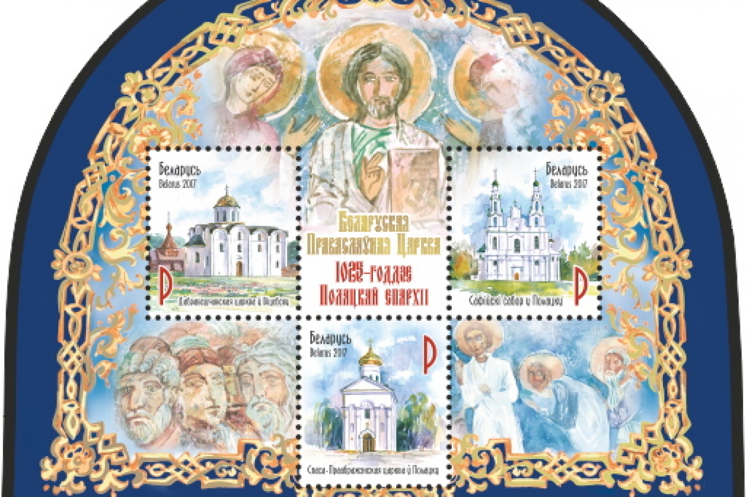 Проект почтового блока был подготовлен в сотрудничестве с Белорусской Православной Церковью и Минской духовной академией. Над блоком работали художник Татьяна Дольская и дизайнер Евгении Бедоник. Блок включает в себя три марки и был отпечатан в бобруйской типографии.
