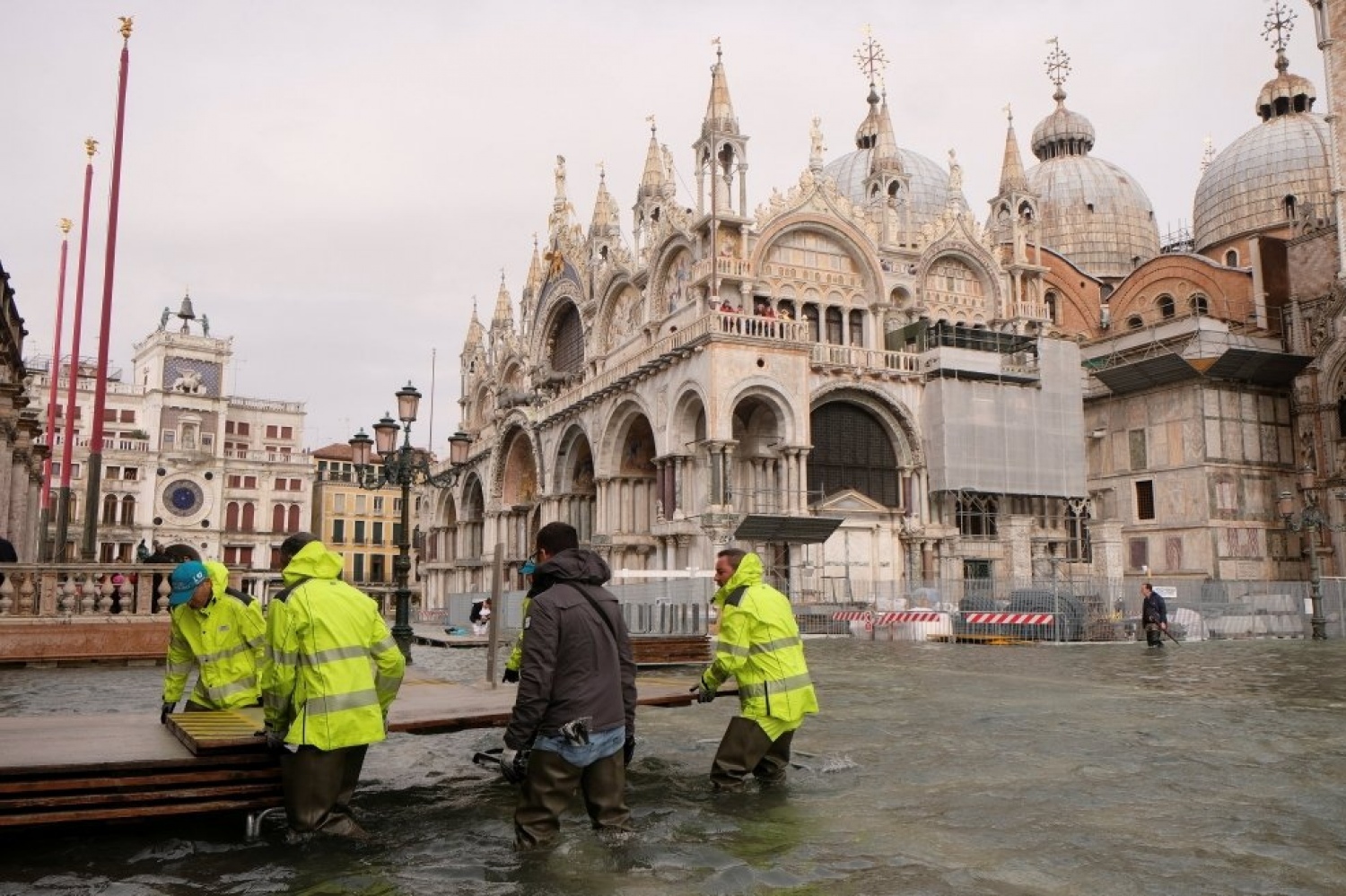 Наводнение подтопило знаменитый старинный католический собор святого Марка в итальянской Венеции. Ливни обрушились на Италию в минувшие выходные, к осадкам подключился сильный ветер, и в целом в Италии от непогоды погибли не менее 11 человек. В базилике святого Марка уровень воды достигал почти одного метра, вследствие чего оказался поврежденным уникальный мозаичный пол - около десяти кв. метров мозаики перед капеллой с иконой Богородицы Никопеи.