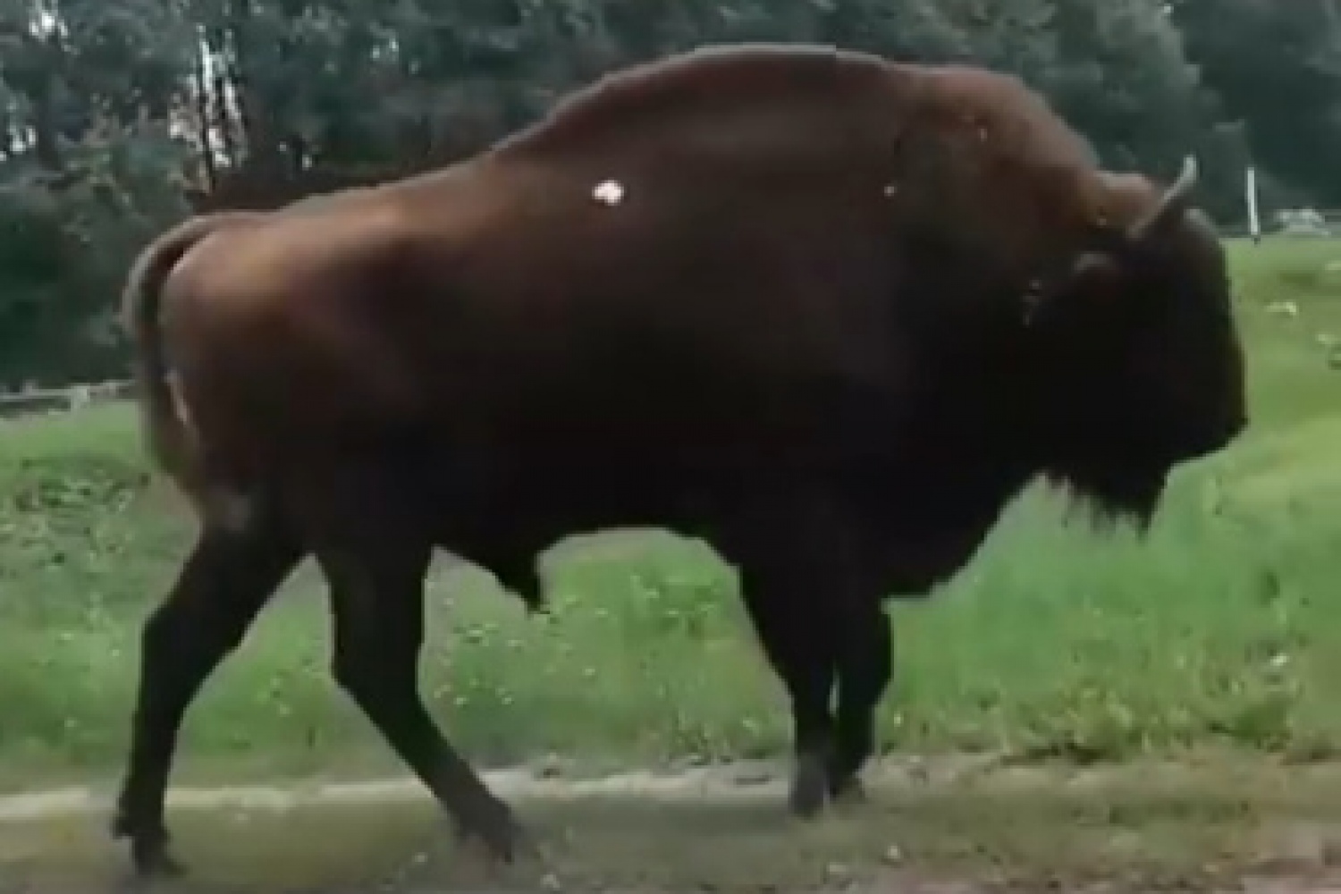 Добры знак? Каля храма ў Полацку гуляў зубр - відэа