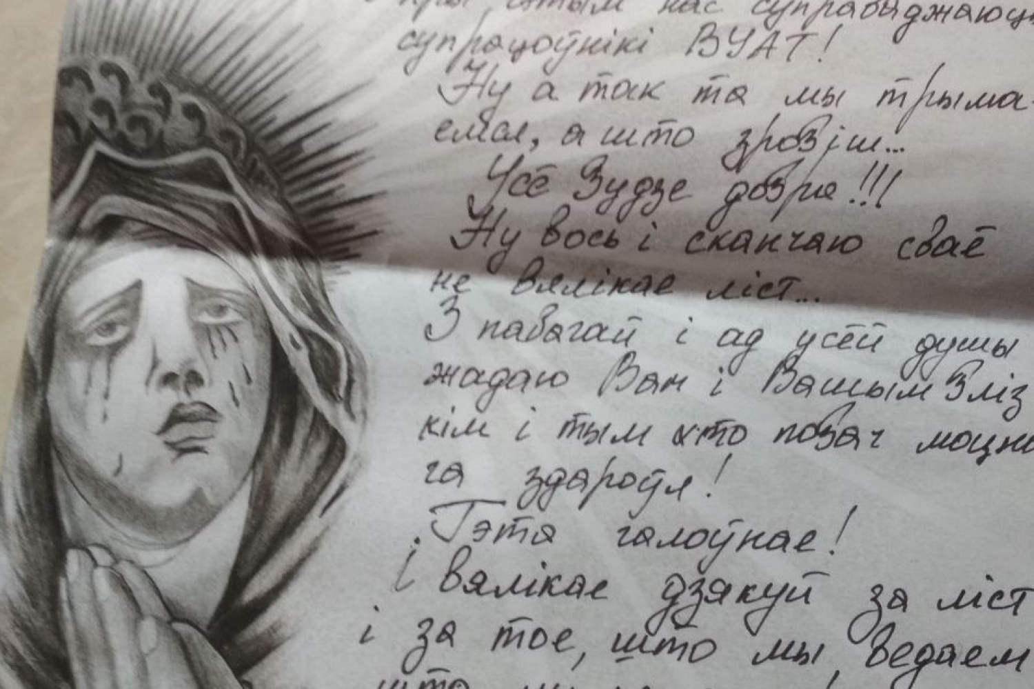 «Мы не адны». Паглядзіце на малюнак Божай Маці ў лісце зняволенага