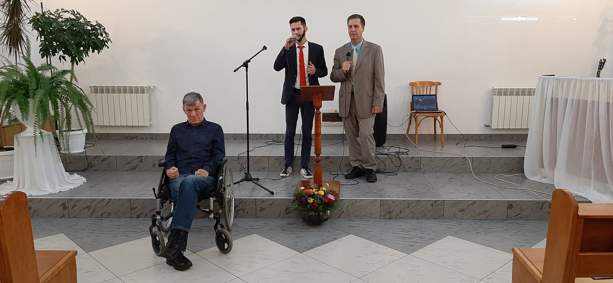 В очередной раз христианский поэт и миссионер Сергей Сапоненко побывал в Беларуси, где провел встречи в учебных заведениях. У 54-летнего Сергея - врожденный детский церебральный паралич: у него не действуют руки и ноги, затруднена речь. Стихи он набирает на компьютере, нажимая на клавиши палочкой закрепленной на обруче, надеваемом на голову.