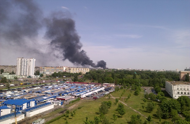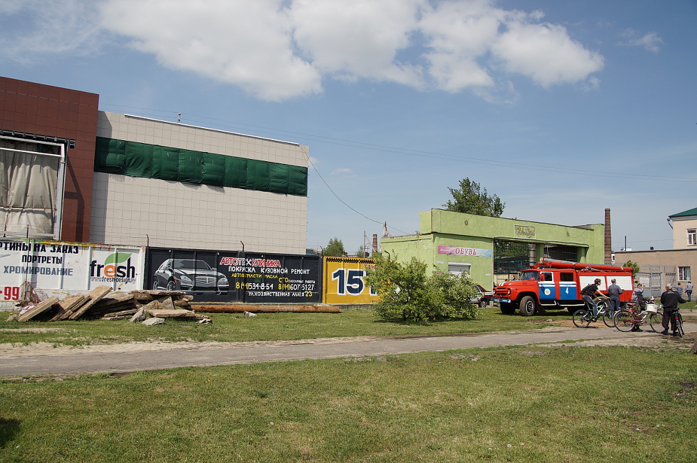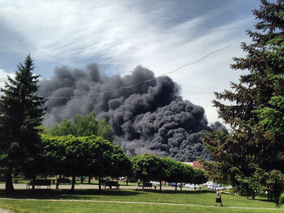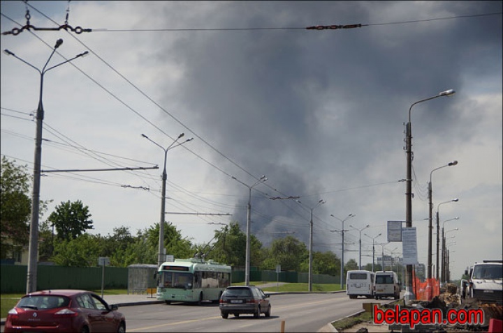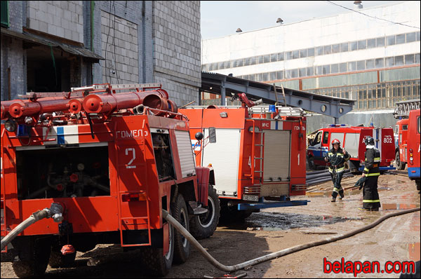 После полудня 16 мая над Советским районом Гомеля поднялись огромные клубы черного дыма. Как оказалось, пожар произошел на территории бывшего предприятия «Эмальпосуда» на улице Барыкина, где сейчас по заказу фирмы «Белинвестплаза» строится гипермаркет. Там планируется разместить универсам «Евроопт», магазины электротехники и других промышленных товаров.