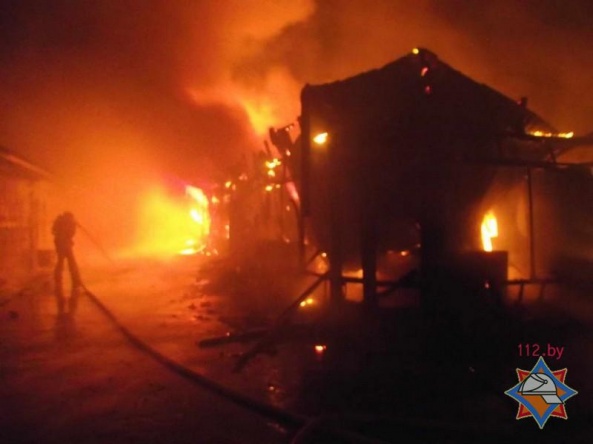 У Мазыры на рынку "Славянскі" ноччу згарэлі 14 гандлёвых павільёнаў - ФОТА