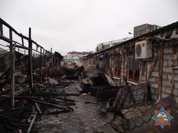 У Мазыры на рынку "Славянскі" ноччу згарэлі 14 гандлёвых павільёнаў - ФОТА