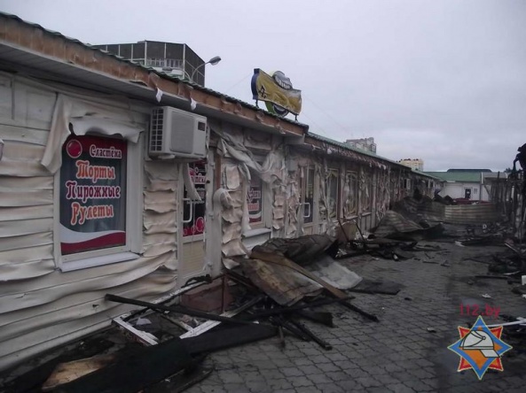У Мазыры на рынку "Славянскі" ноччу згарэлі 14 гандлёвых павільёнаў - ФОТА