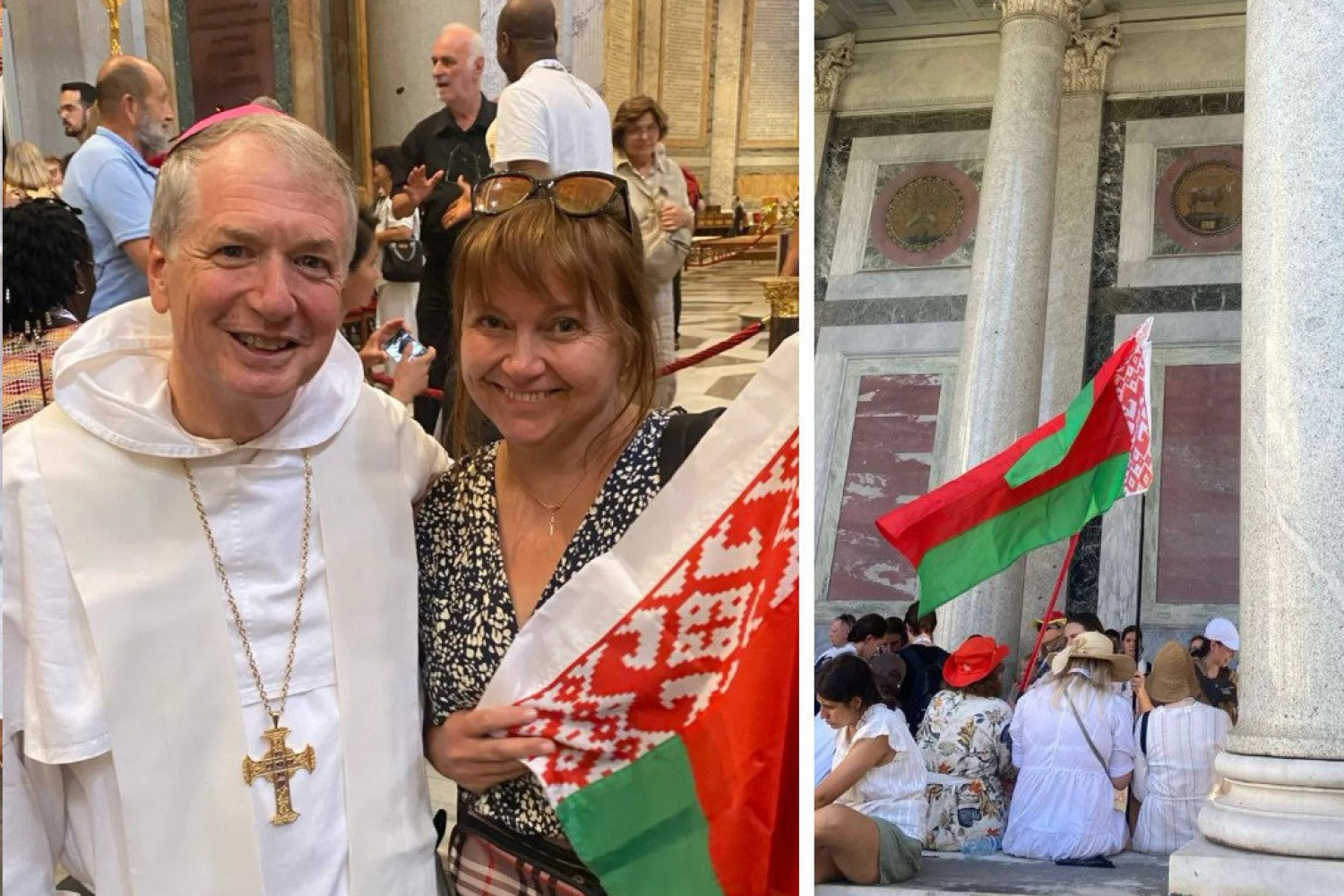 Толькі ў адной групы на здымках быў бачны дзяржсцяг – гэта ўдзельнікі Нэакатэхуменальнага шляху з Гомеля. Некаторыя з гэтай групы выкарыстоўвалі ў Рыме дзяржсцяг. У асноўным, гэта былі не маладыя вернікі.