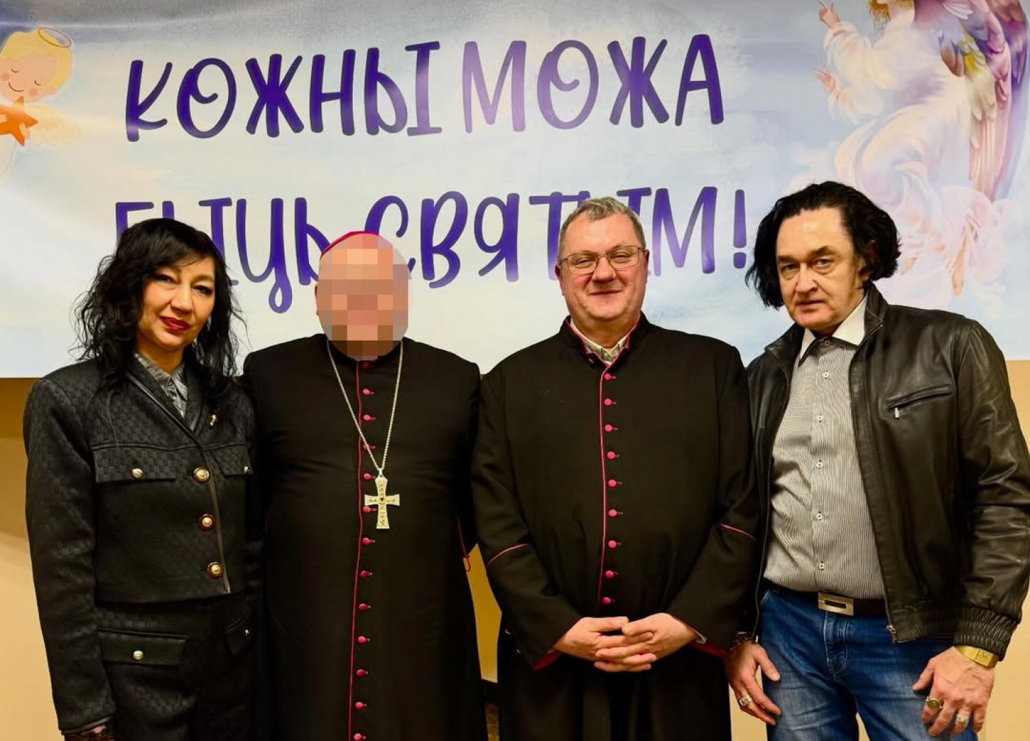 Мы заблюрылі аблічча біскупа на здымку і не называем яго, таму што, відавочна, ён не знаёмы блізка з гэтым бізнэсоўцам і такі здымак можа дыскрэдытаваць іерарха. Бо асоба чалавека, які пазіруе побач, вельмі неадназначная.