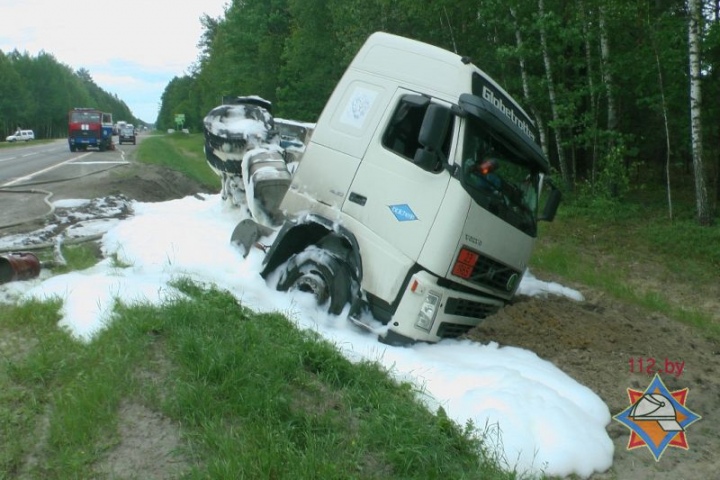 П'яны паляк перавярнуў фуру з газам у Гомельскай вобласці - ФОТА