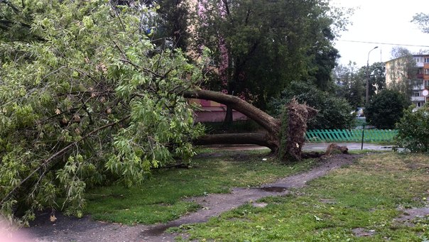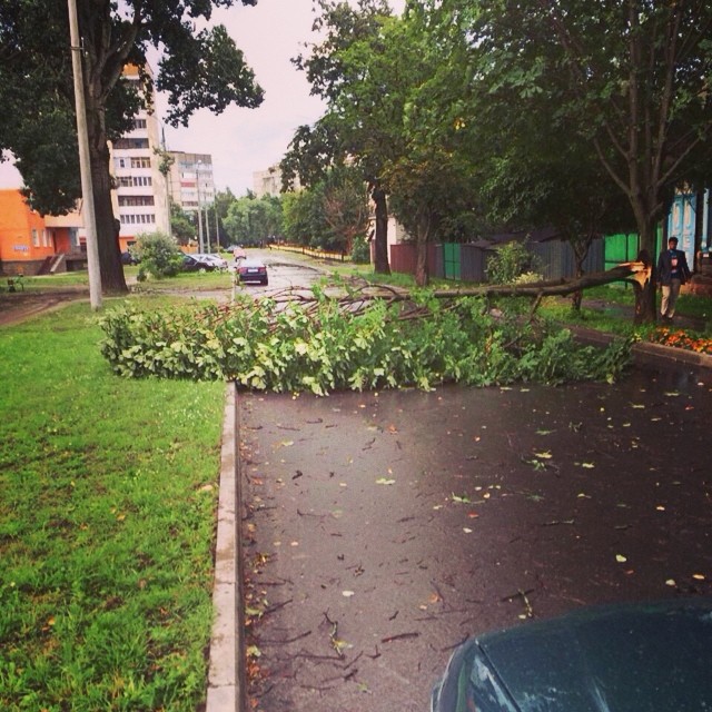 Также во многих местах в Гомеле во время почти тропического ливня ветер выворачивал деревья с корнями, гнул билборды. Ливень с грозой повторился и в воскресенье. (см. фото из соцсетей).