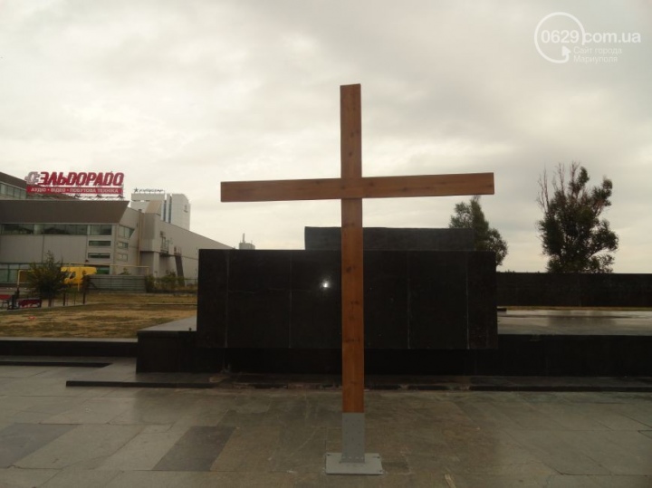 Замест помніка Леніну ў Марыупалі ўсталявалі Крыж