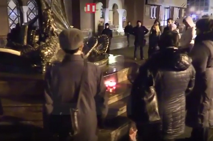 Таксама група вернікаў здзяйсняе тут малітвы аб міры ва Украіне.
