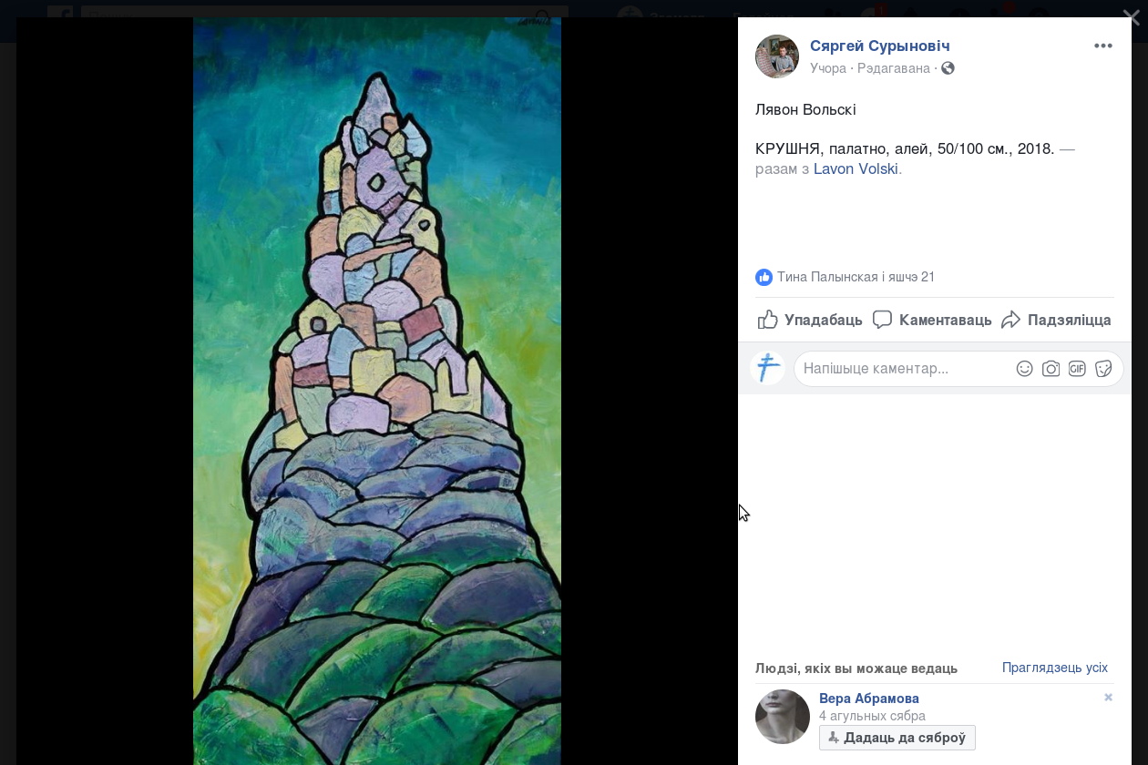 А вядомы беларускі рок-музыка Лявон Вольскі стварыў палатно «Крушня» і перадаў яго падчас пленэру арганізатару сустрэчы, а. Сяргею. Работа выканана алеем на палатне памерам 50 на 100 см.