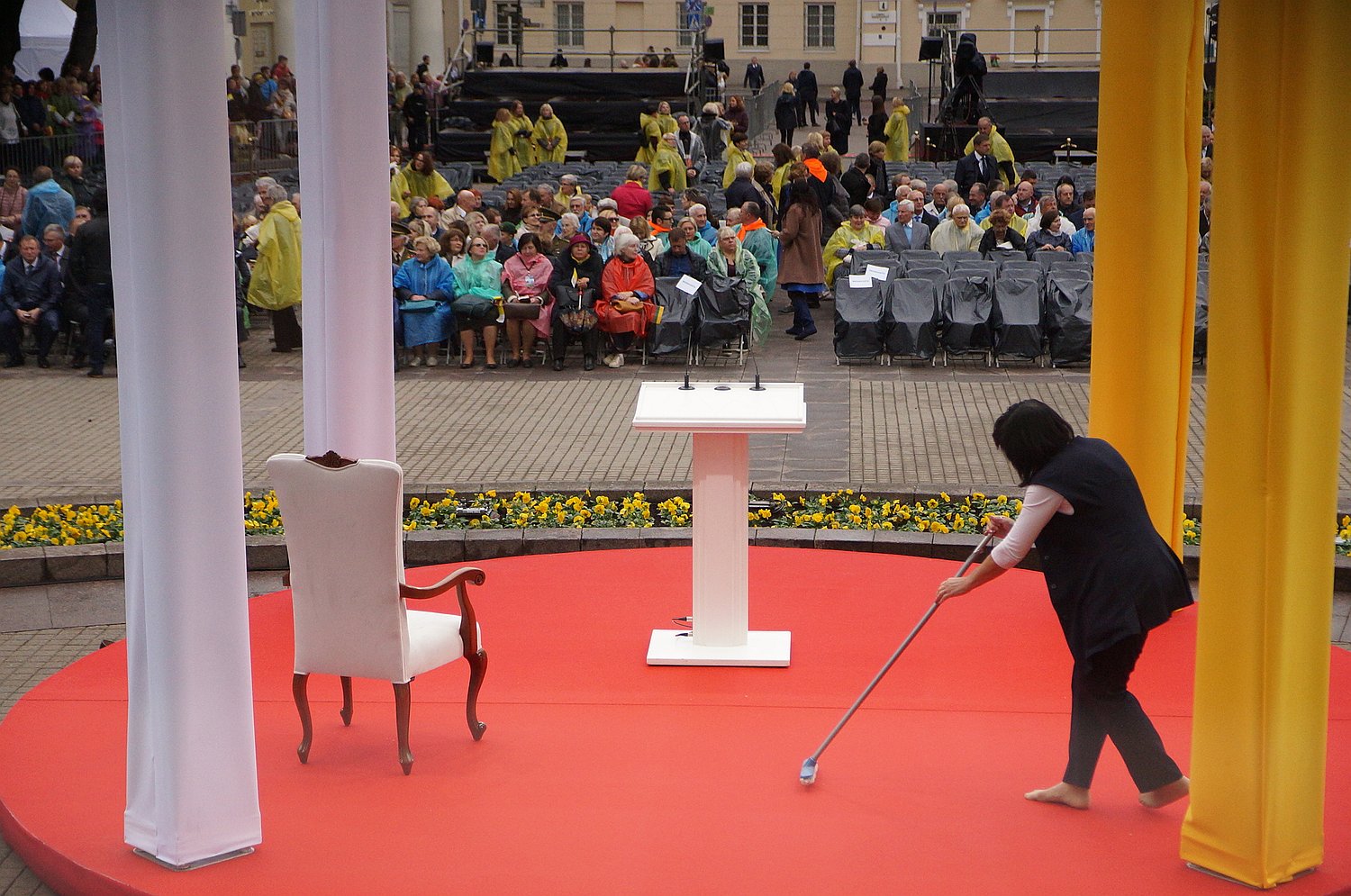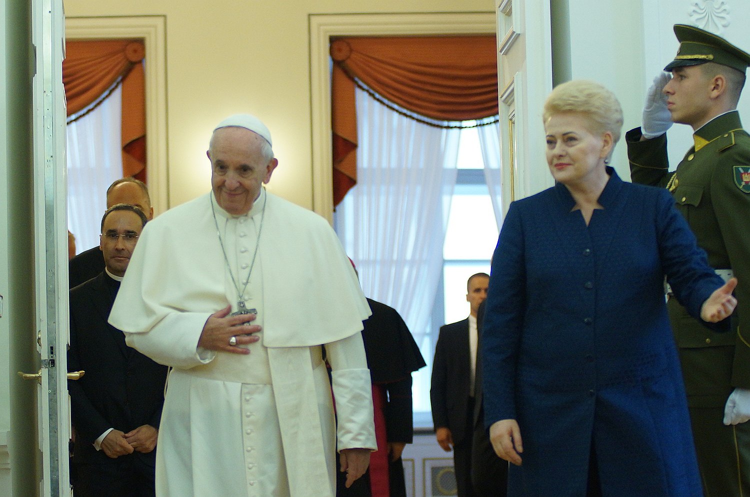 Тым часам Папа прыбыў у Вільню, дзе адбылася яго сустрэча з прэзідэнтам Літвы Даляй Грыбаўскайтэ. Затым ён выступіў з прамовай перад кіраўнікамі краіны, членамі ўрада, дыпламатамі і грамадскімі дзеячамі на плошчы ля Прэзідэнцкага палаца. Пантыфік таксама наведаў «Вострую браму» і сустрэўся з моладдзю на Катэдральным пляцы.