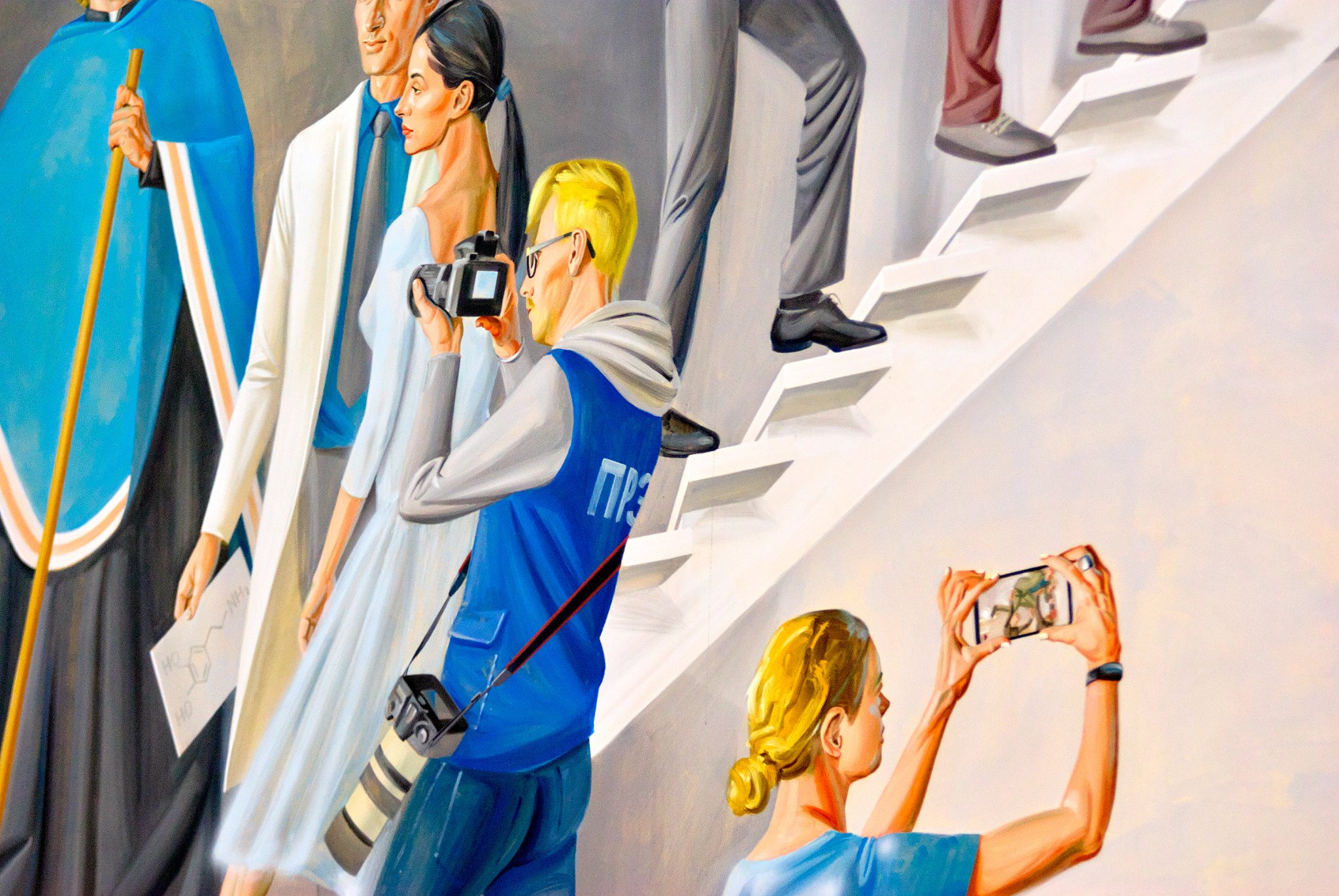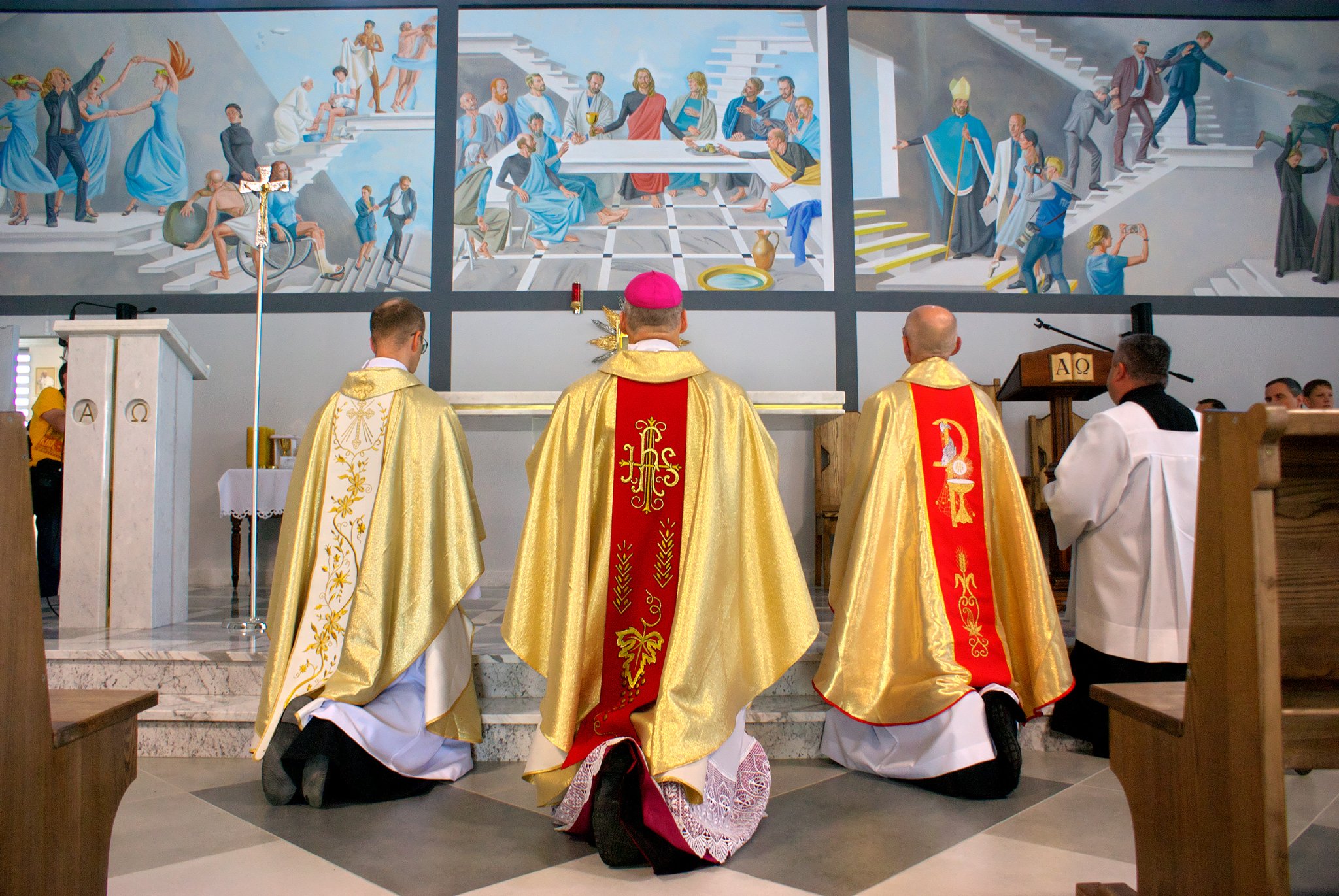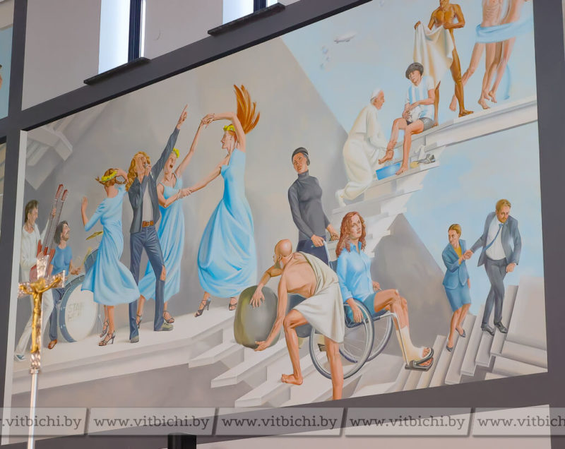 Дарэчы, у Віцебску ёсць яшчэ адзін касцёл з незвычайным афармленнем - яго аздабляў той жа мастак (анёл з гітарай і Пуцін на каленях - чым здзівіў свет касцёл у Віцебску). А на фрэсках у новым касцёле пазналі знакамітага футбаліста Дыега Марадону, якому Папа Рымскі ўмывае ногі.