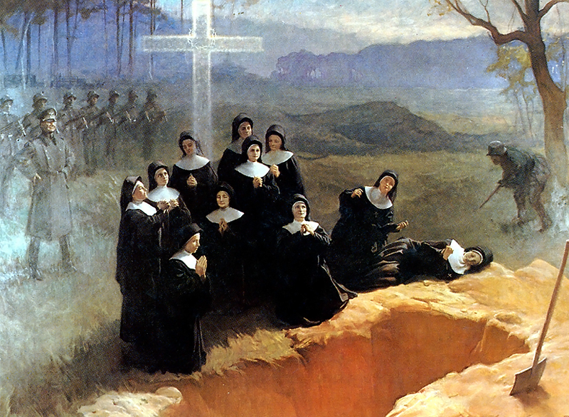 Нагадаем, падчас Другой сусветнай вайны загінулі многія беларускія католікі-пакутнікі. Напрыклад, 1 жніўня 1943 года адзінаццаць сясцёр назарэтанак былі расстраляныя фашыстамі пад Навагрудкам замест арыштаваных мірных жыхароў (на ілюстрацыі ніжэй). Чытайце таксама: Другая Сусветная вайна для Каталіцкай Царквы. Міфы і факты >