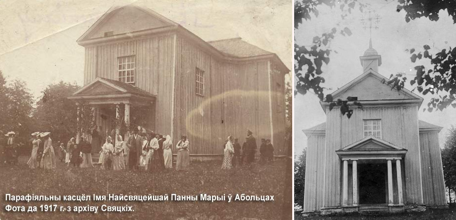 Як сказана ў матэрыяле, у 1387 годзе польскі кароль і вялікі князь літоўскі Ягайла пабудаваў у Абольцах першы касцёл на беларускіх землях. Мяркуючы па інвентарным спісе, які знаходзіўся ў сельскім савеце, зафіксаваны на фота храм Найсвяцейшай Панны Марыі быў пабудаваны ў 1809 годзе на месцы папярэдніх.