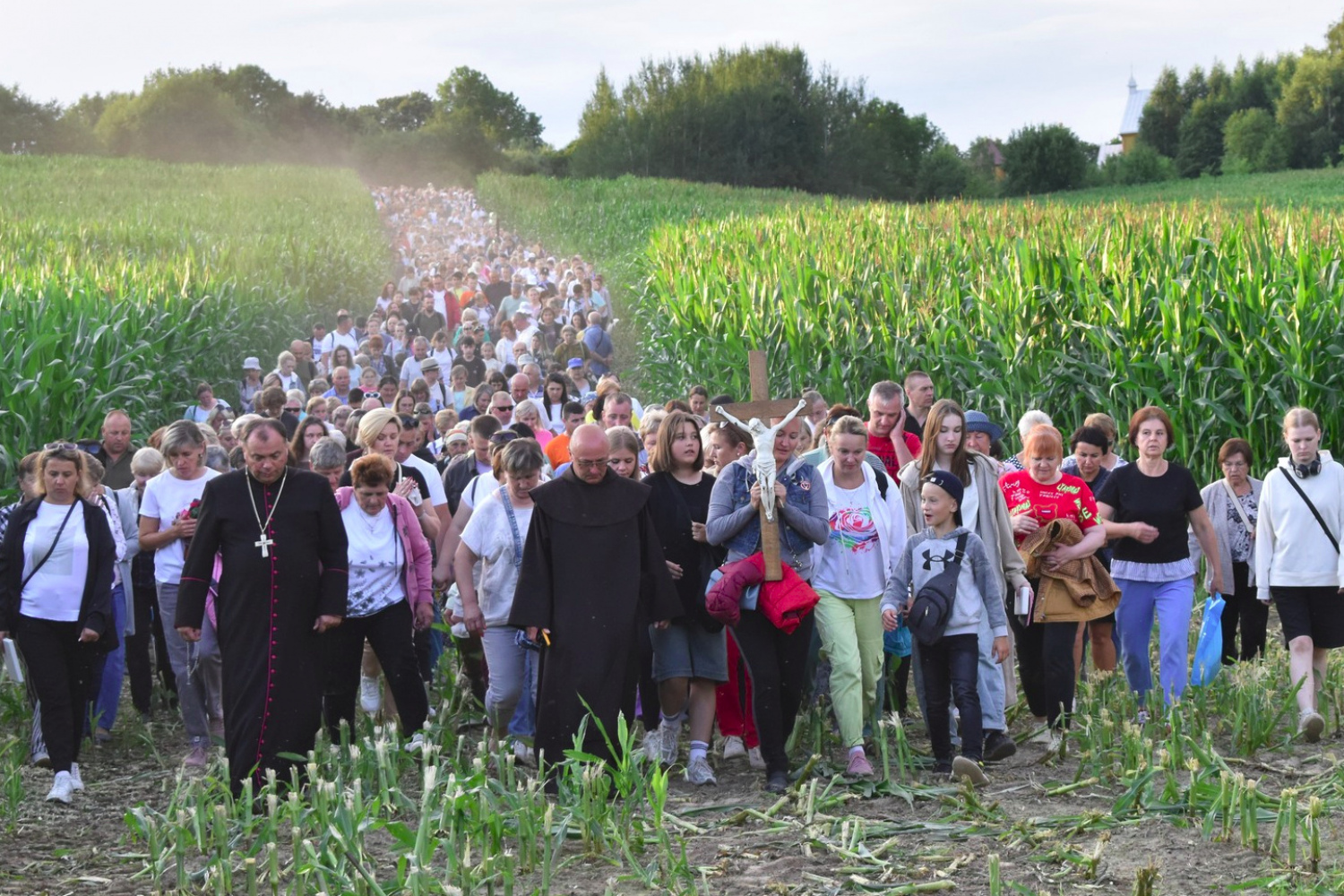 Галоўнай падзея першага дня стаў Крыжовы шлях па прасторах гудагайскай Кальварыі: рака вернікаў на чале з біскупам Уладзімірам Гуляем ішла праз кукурузнае поле, праз лес да стацыяў Мукі Пана.