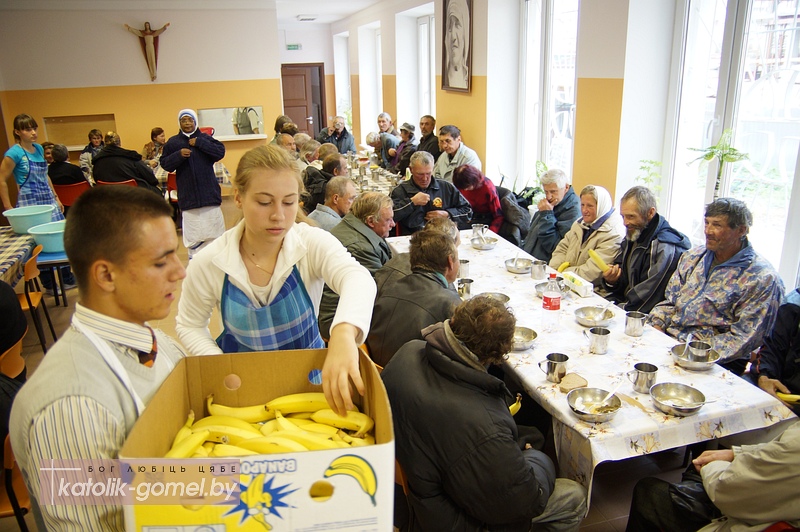 Нагадаем, сёстры ордэна Маці Тэрэзы ўжо больш за 20 год у Гомелі займаюцца многімі справамі, за якія мала хто хацеў брацца. Дом Міласэрнасці служыць прытулкам для некалькіх хворых мужчын і жанчын, якія апынуліся на вуліцы без сродкаў да існавання. Сёстры даглядаюць за імі, лечаць, дапамагаюць кінуць піць, аднавіць дакументы і ўладкавацца на працу. Місіянеркі рыхтуюць абед для бяздомных, раздаюць прадукты і адзенне для бедных сем'яў і адзінокіх старых, працуюць з дзецьмі з малазабяспечаных і праблемных сем'яў. Парафіяне касцёла дапамагаюць у Доме міласэрнасці карміць жабракоў, прыходзячы на працу ў сталовую. Дапамагчы можа кожны: напрыклад, раздаць ежу, памыць посуд, прынесці вопратку ці абутак.