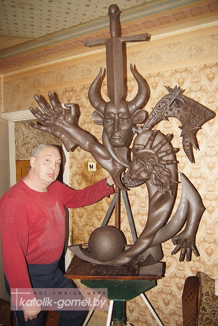 Андэграўндны гомельскі скульптар Яўген Багамаз нядаўна завяршыў сваю новую працу, якую назваў «Айцец і Сын ці Адплата». Майстар адлюстраваў Бога-Айца і Ісуса Хрыста, прычым, далоні Абодвух прабітыя адным цвіком. Скульптар паказаў Госпада з рагамі, такі нязвыклы вобраз можа шакаваць гледача, але аўтар менавіта так ўбачыў Бога і адзначыў, што гэта не супярэчыць хрысціянскаму вучэнню - бо Бог можа прымаць любое аблічча. Крыж Езуса над галавой Айца ператвараецца ў меч адплаты ў момант Страшнага суда.