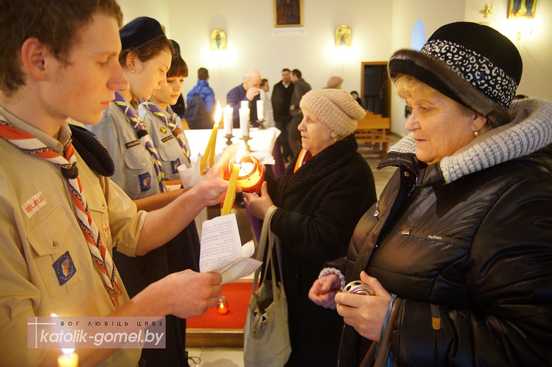 Агонь з Бэтлеему, месцы зямнога нараджэння Ісуса Хрыста, 21 снежня на нядзельнай святой Імшы ў Гомелі прыняў з рук мясцовых каталіцкіх скаўтаў біскуп Казімір Велікаселец. Каб даставіць яго да раніцы ў Гомель, скаўты адправіліся за ім у Мінск яшчэ ў ноч на суботу, а па дарозе на розных машынах заязджалі ў многія гарады, каб перадаць сімвал Раства, якое каталікі святкуюць 25 снежня: у Магілёў, Бабруйск, Асіповічы, Жлобін , Нясвіж, Баранавічы, Пінск, Лунінец, Мазыр.
