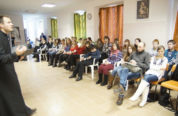 Школьнікі, студэнты і працуючыя маладыя людзі з жывой цікавасцю ўдзельнічалі ў духоўных практыкаваннях, бо рыхтавалі сустрэчу іх аднагодкі - моладзь з гомельскай парафіі і малады вікарый ксёндз Дамінік. Аб граху, рэлігійнай крывадушнасці, ідалапаклонстве ў сучасным свеце, пра сэнс ахвяры Хрыста, малітву і любоў з моладдзю гаварылі на мове яркіх і крэатыўных сцэнак і відэапрэзентацый. Моладзь працавала ў групах, разважаючы над сваімі асабістымі зносінамі з Богам, спявала і танчыла.