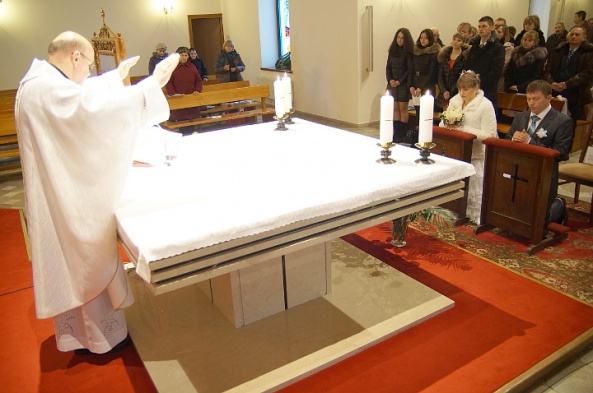На ўрачыстую Святую Імшу прыйшлі сваякі і сябры маладых. Для сужэнцаў і іх гасцей пробашч парафіі прачытаў глыбокую і цікавую гамілію, падкрэсліўшы, што без Хрыста сумеснае жыццё лепш нават не пачынаць:
