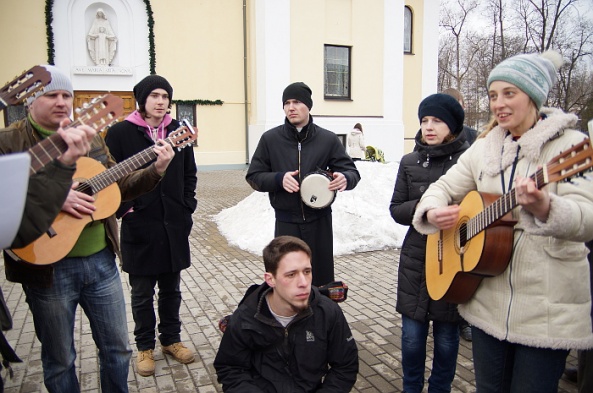 Цяпер такія сустрэчы ля касцёла будуць праводзіцца да 5 траўня ўключна, кожную нядзелю ў 13.30. Каталікі запрашаюць прыходзіць кожнага, каб пачуць Добрую вестку.