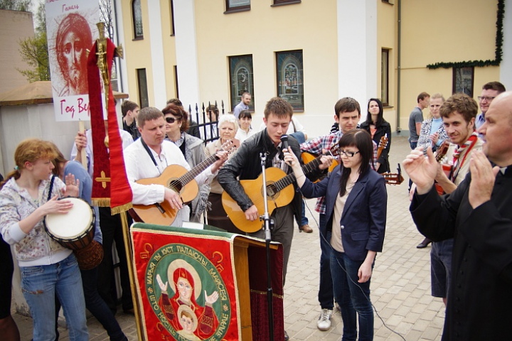 Нагадаем, у Велікодны перыяд нэакатэхуменальныя суполкі гомельскай рыма-каталіцкай парафіі звястуюць пропаведдзю, песнямі і танцамі [фота, відэа].