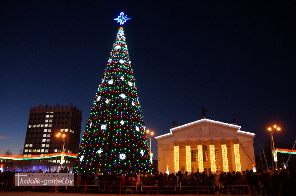 Вечером 15 декабря в Гомеле зажгли главную елку города и открыли световой парк знаменитых зданий мира. Елка стала еще ярче, чем в прошлом году, а главное - ее снова венчает Вифлеемская звезда, символ Рождества Христова.