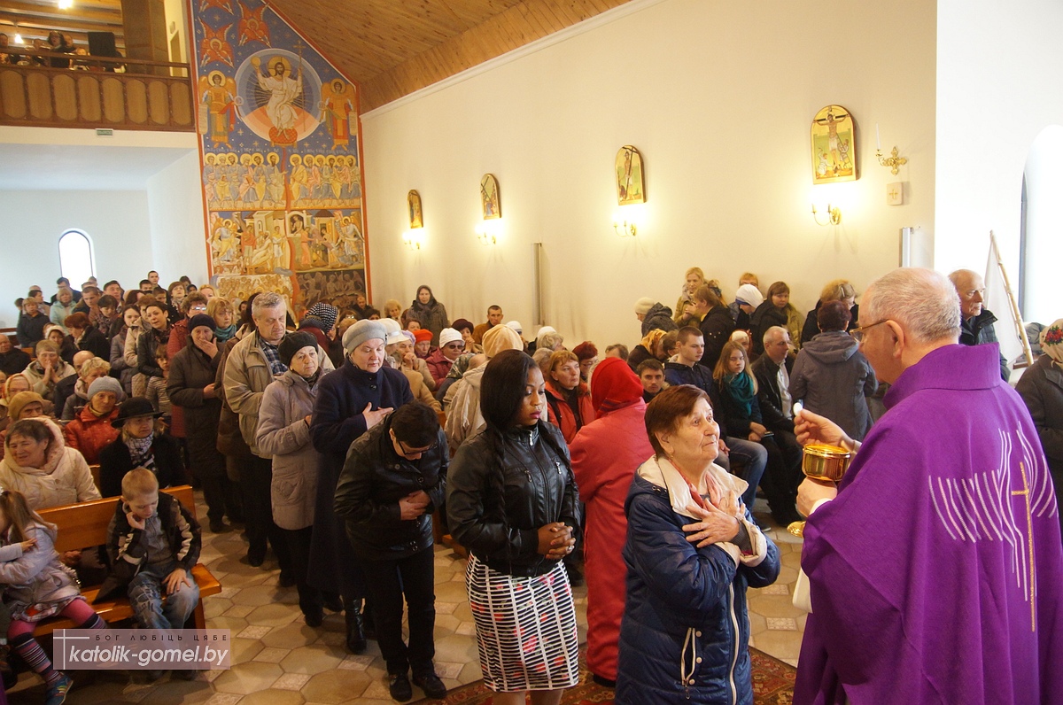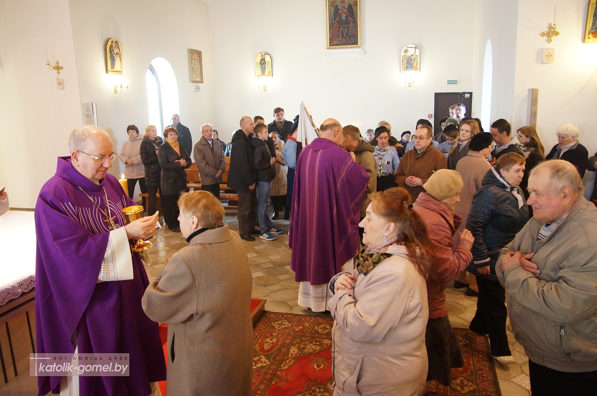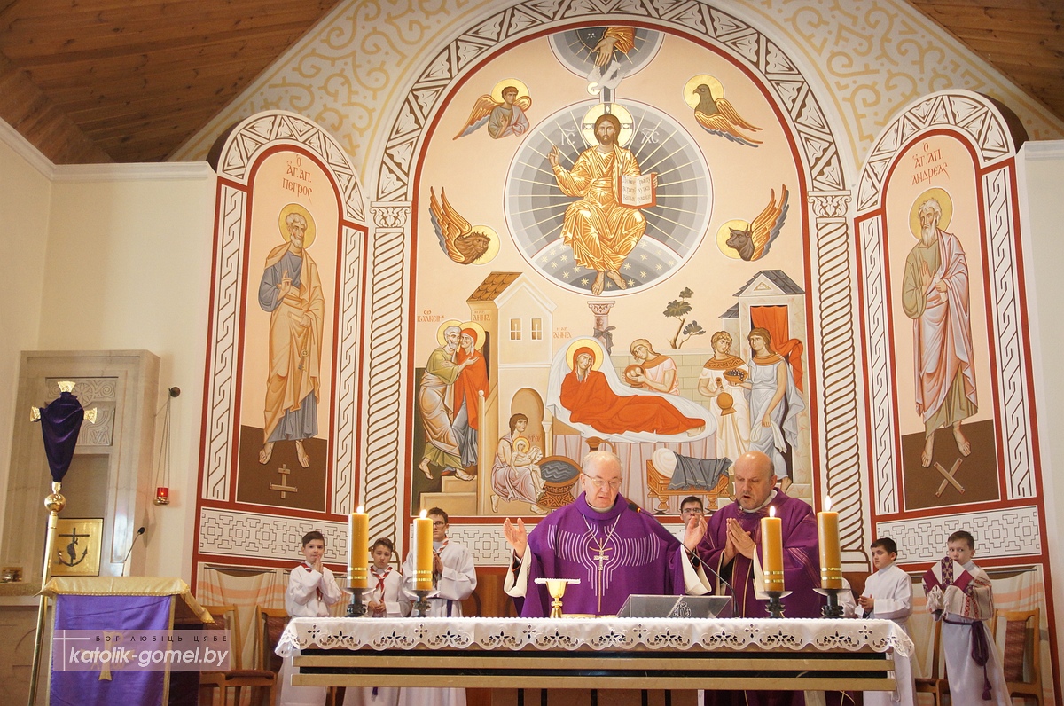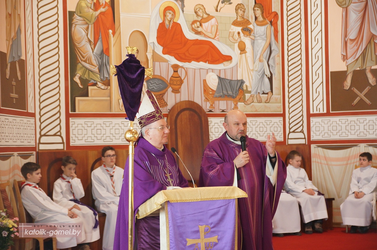 Больш за 25 гадоў у Беларусі служыць кс.Славамір - калі ён прыехаў у Гомель, тут не было ні парафіі, ні каталіцкага храма, а зараз ён мае каля тысячы парафіянаў. Арцыбіскуп Люблінскі адзначыў, што мясцовая каталіцкая супольнасць жывая і дынамічная, дае хрысціянскае сведчанне і робіць справы міласэрнасці.