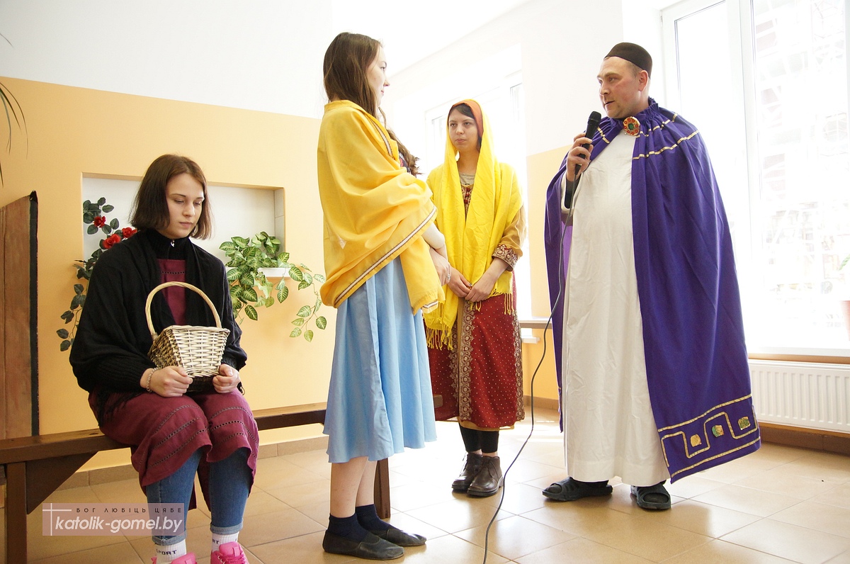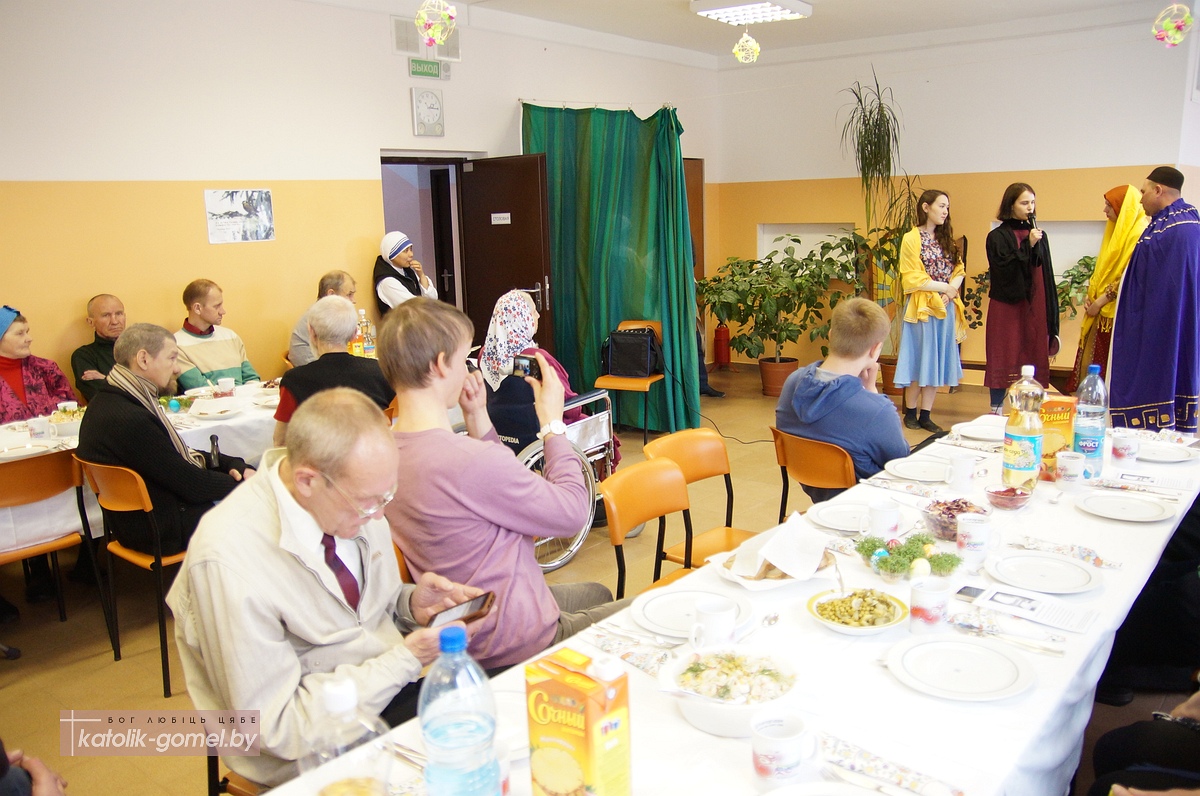 У каталіцкім Доме міласэрнасці «Місіянерак любові» (сясцёр Маці Тэрэзы) у Гомелі моладзь паказала Велікодны спектакль для шматдзетных і праблемных сем'яў, а таксама для бедных, якія прыходзяць сюды на абеды. Прадстаўленне пакажуць і ў бальніцы сястрынскага дагляду ў вёсцы Старыя Дзятлавічы, у іншых сацыяльных установах, у каталіцкіх парафіях Мазыра і Петрыкава.