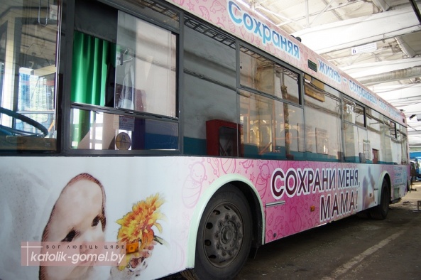 10 чэрвеня ў Гомелі на лінію выходзіць новы тралейбус, які аформлены незвычайнай сацыяльнай рэкламай. Слоганы тралейбуса заклікаюць захаваць жыццё ненароджаных дзяцей. Ідэя «супрацьабортнага» тралейбуса ўзнікла ў членаў грамадскага аб'яднання «Выратаванне немаўлятаў», у якім знаходзяцца хрысціяне розных канфесій, лекары-гінеколагі і прадстаўнікі іншых прафесій.