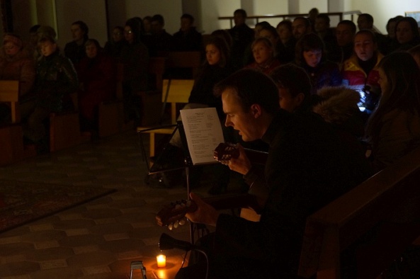 На сузіранне сабраліся каля 50 вернікаў, у асноўным, моладзь. Свечкі, медытатыўныя псалмы пад гітару, чытанне Пісання, малітва ў цішыні, сузіранне і пакланенне перад Крыжам стваралі асаблівую атмасферу.