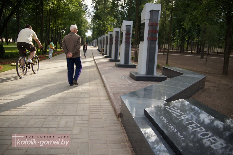 Пасля маштабных работ па замене цеплатрасы ў Студэнцкім скверы Гомеля, калі тут - на месцы старадаўніх могілак - з-пад зямлі паднялі многія астанкі, сквер добраўпарадкавалі. Пешаходныя дарожкі выклалі пліткай, высадзілі газоны, ўсталявалі ліхтары, а прама каля рыма-каталіцкай царквы стварылі Алею герояў.