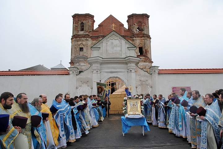 Каля кляштара ўсе жадаючыя змогуць прыкласціся да копіі цудатворнага абраза Маці Божай Юравіцкай.